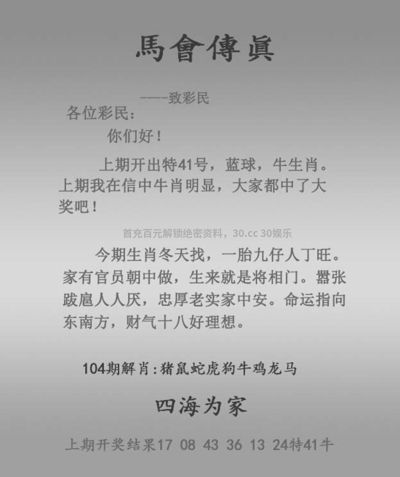 105期:绝杀叁肖【兔牛马】开:狗44准 |